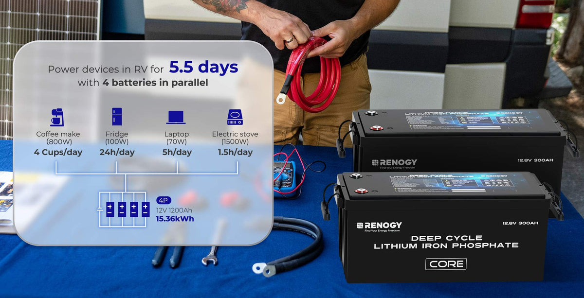 3. Hoeveel Renogy 12V 300Ah Core Series-batterijen kan ik maximaal aansluiten?