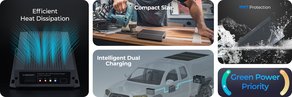 RENOGY 12V/24V IP67 50A DC-DC Acculader met MPPT