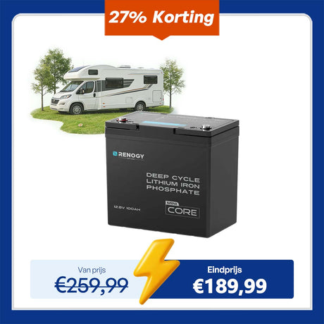 Ja, Renogy 12V Core Mini accu’s kunnen in serie worden aangesloten om een 24V-, 36V- of 48V-off-grid systeem te creëren. Je kunt ook series van accu’s parallel verbinden (zelfde model vereist) om maximaal vermogen tot 61,44 kWh te bereiken.