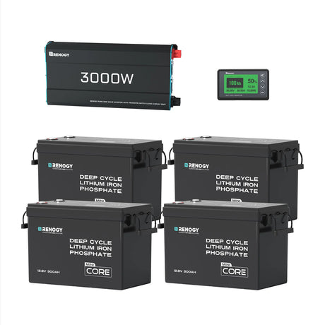 Renogy 12V 300Ah Core Mini accu’s bieden tot 5000 laadcycli bij 80% ontlaaddiepte (DOD). Ze hebben een 200A Battery Management System (BMS), IP65-bescherming en een robuust ontwerp om aan de eisen van diverse omgevingen te voldoen.